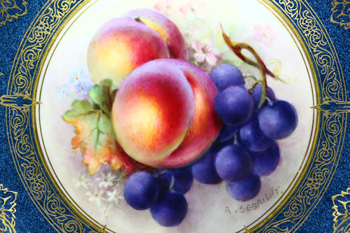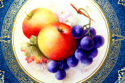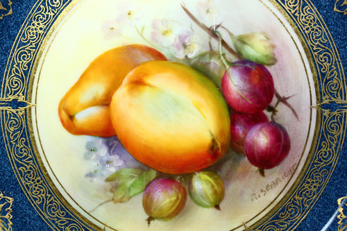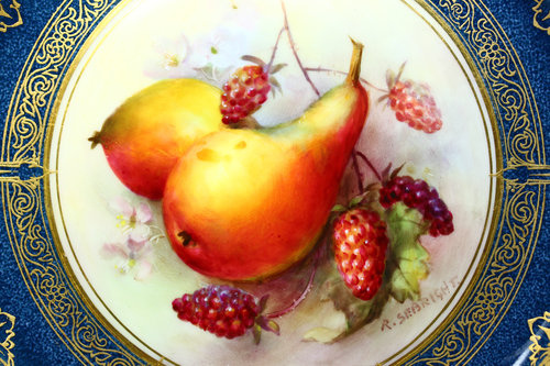 Four Royal Worcester Fruit Plates signed Richard Sebright made for Tiffany & Co. New York